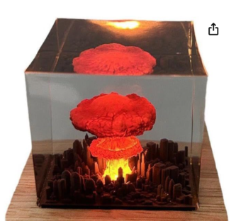 通販サイトのページでは、同種商品が「核爆発 ムードライト 広島のその日 広島 インテリア 照明 就寝など 原子爆弾 きのこ雲」と説明されている。別のサイトの同種商品では「きのこ雲 核爆発ランプ」となっている。
